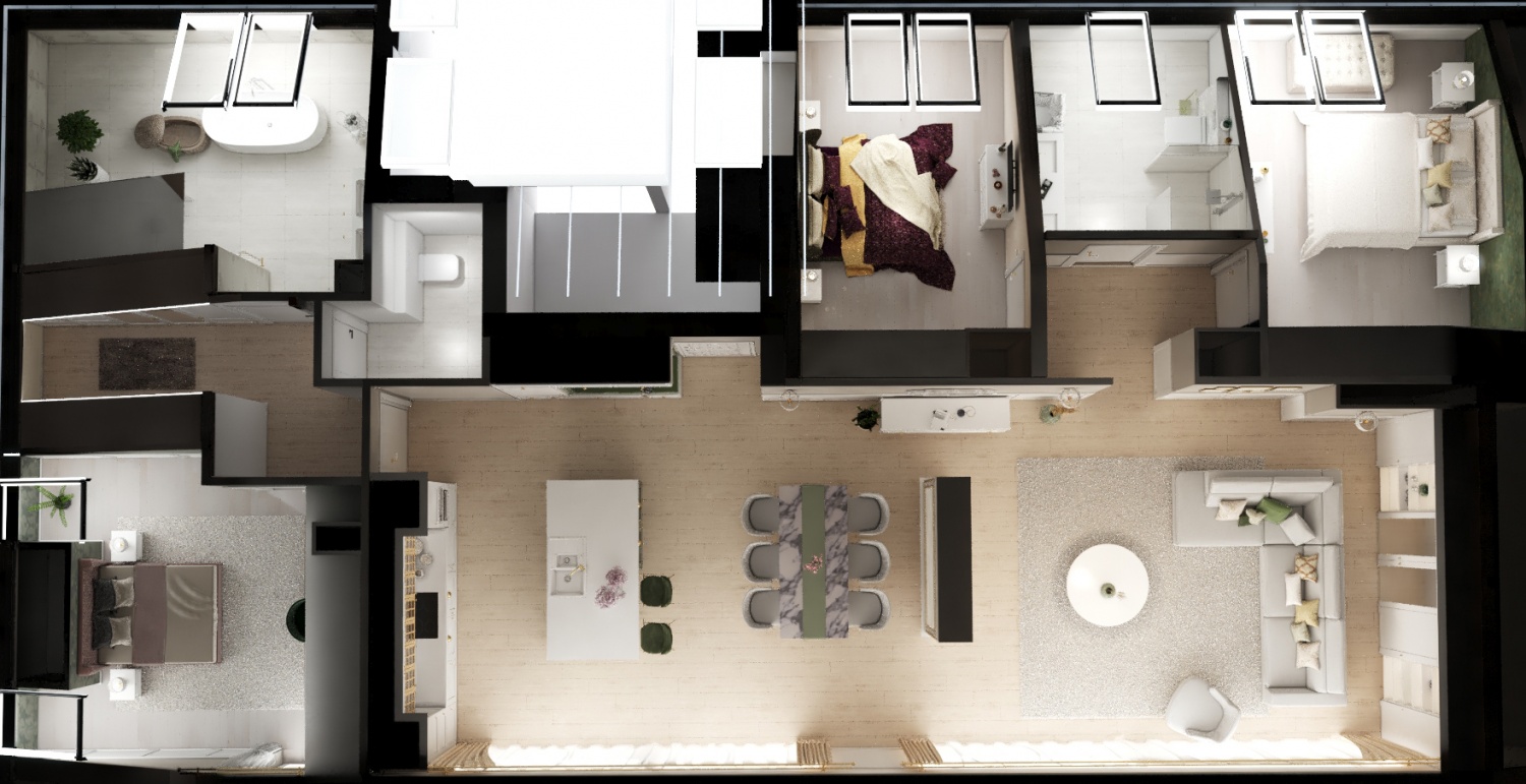 Ezekből a típuslakásokból 3 lakáshoz készült látványterv.